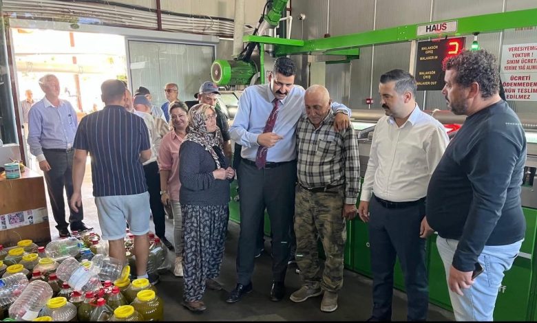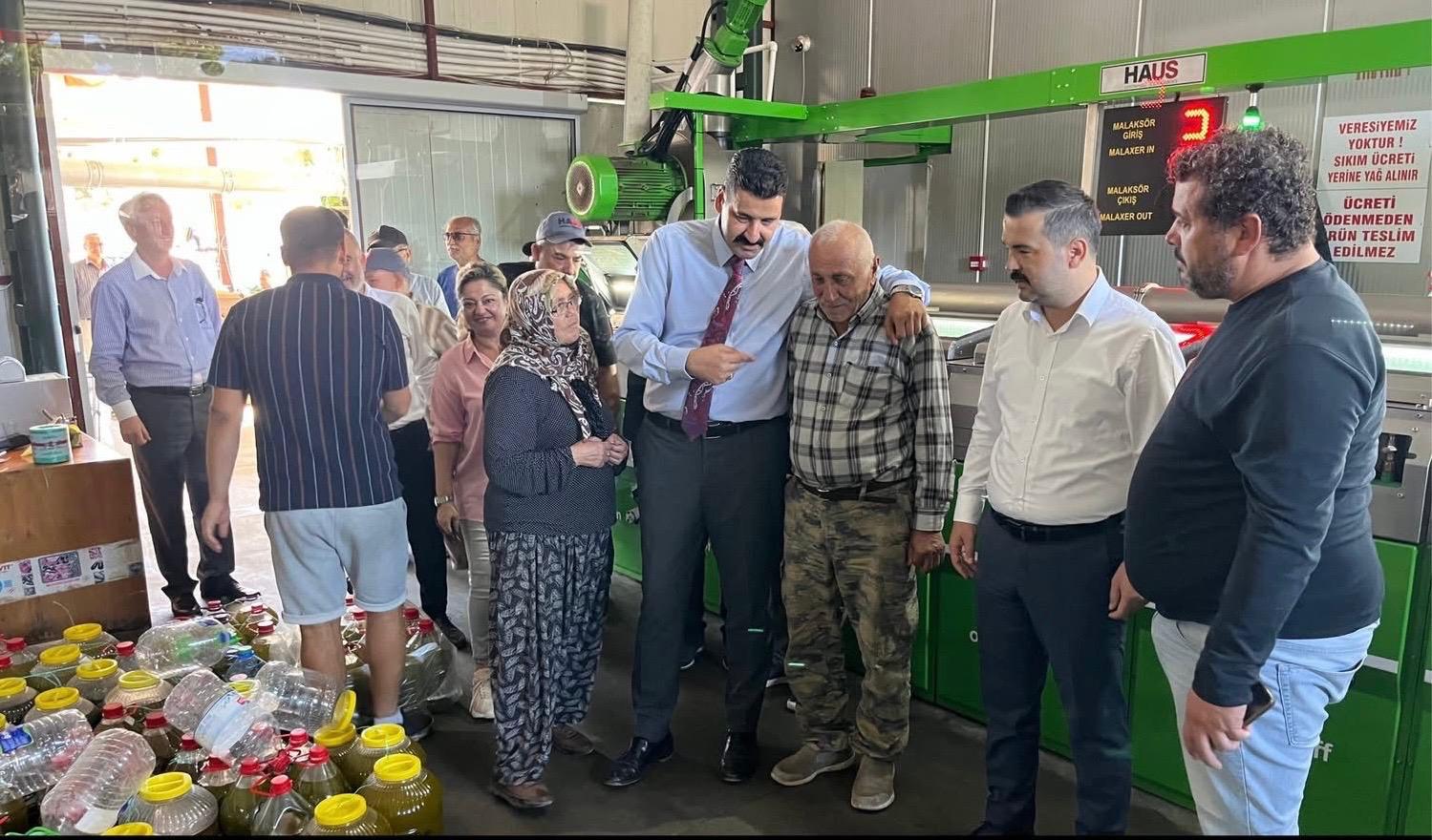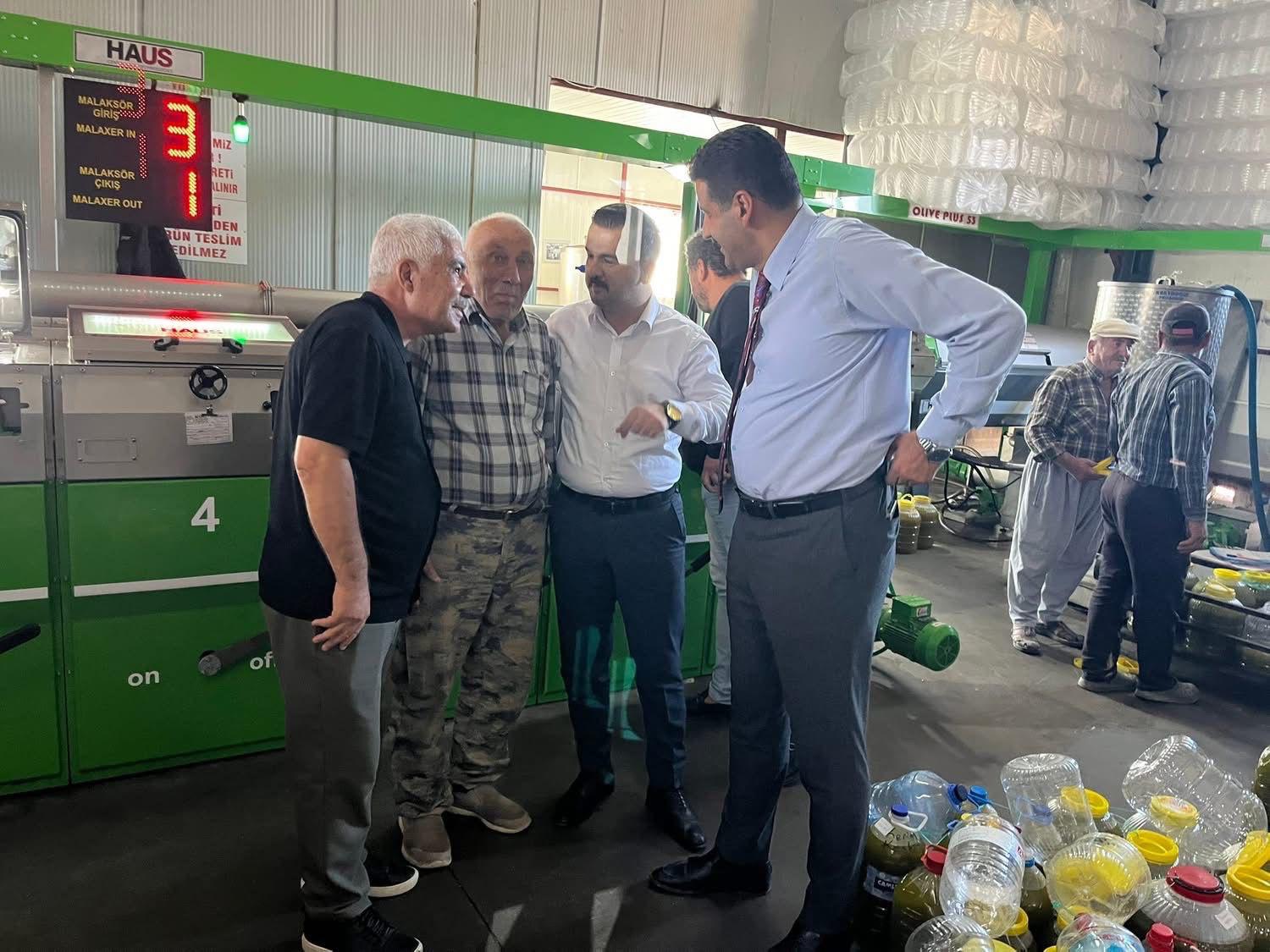 Heyet, mahalledeki zeytinyağı fabrikasını da ziyaret ederek işletme çalışanlarına “bereketli olsun” dileğinde bulundu.